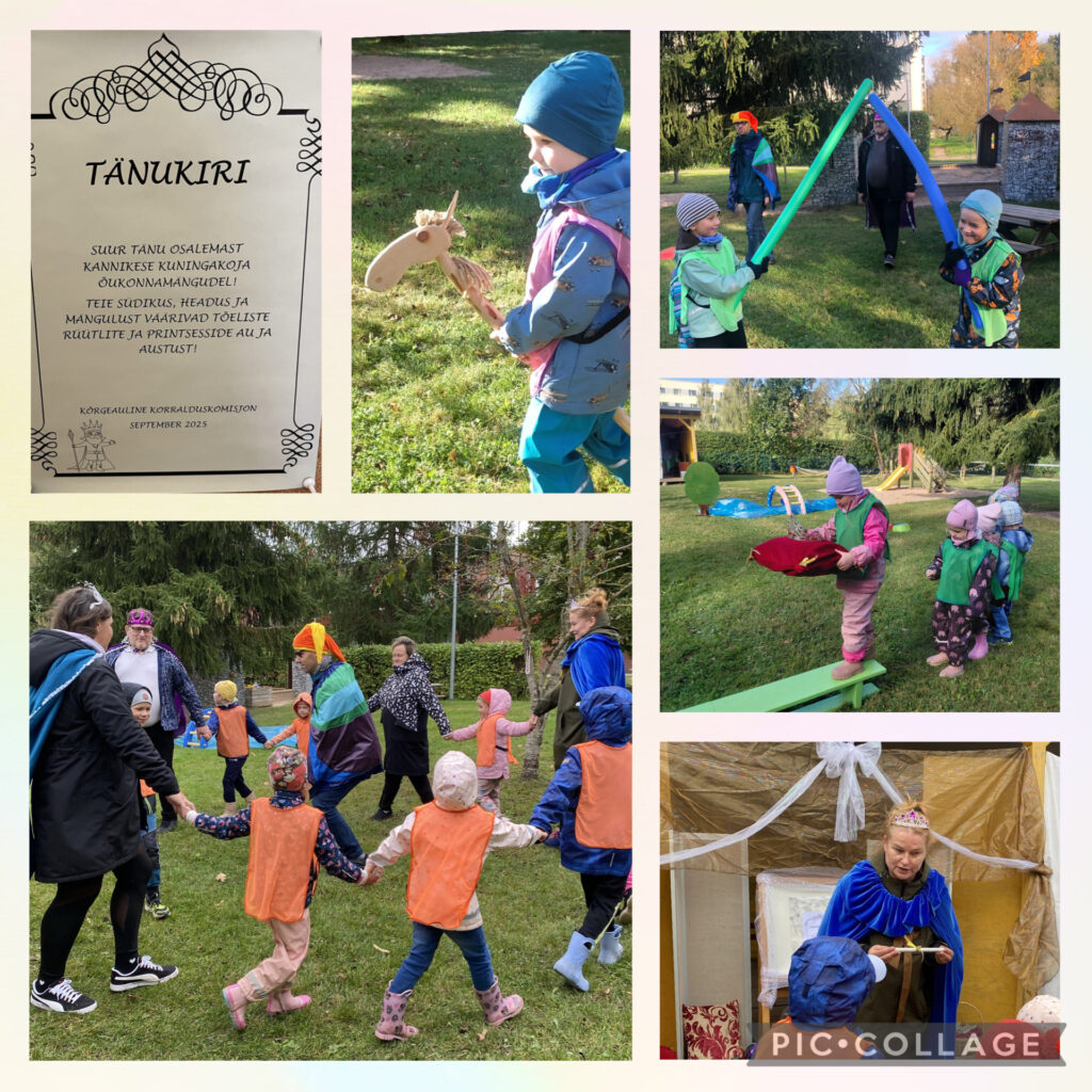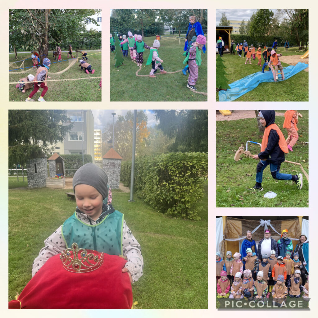 Spordinädala raames rändasid lapsed seekord muinasjutumaailma, kus neid ootasid põnevad õukonnamängud. Kõik algas suurest segadusest kuningalossis – printsess avastas, et tema aarded on kadunud! Õnneks tulid lapsed appi ja leidsid kõik printsessi asjad üles. Seiklused sellega ei lõppenud, teine printsess vajas päästmist vangitornist, mida valvas tuld purskav lohe. Selleks tuli läbida tõeliselt katsumusterohke rada: liikuda mööda kitsast metsateed, ületada jõgi, ronida mäkke, joosta ümber kõrgete müüride ning tungida läbi padriku, kus varitsesid oksad ja ämblikuvõrgud. Alles siis jõuti tornini, kust printsess päästeti. Järgmiseks toimusid rüütlite katsed: krooni tuli kanda tasakaalurajal nii, et see maha ei kukuks, kepphobustel läbiti osavust ja kiirust nõudev rada ning võeti ka mõõtu piigivõitluses. Kõige krooniks sai tantsida uhkeid õukonnatantse, mis tõid mängudesse pidulikkust ja lusti. Päev oli täis rõõmu, seiklusi ja muinasjutulist elevust. Meie väikestest said korraks rüütlid ja printsessid – igaüks oma oskuste ja rõõmsa südamega.