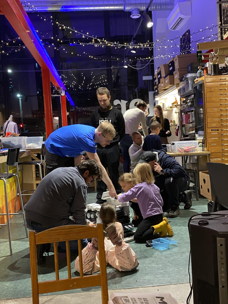 Jutulinnud kutsusid oma isad Kastani tänaval asuvasse Paranduskeldrisse, et uurida, mis koht see selline on, mida seal teha saab ja toetada väikse annetusega sellle asutuse toimimist. Koos isadega sai lammutada printerit ja kohvimasinat, parandada pükse, proovida õmblemist, jne.