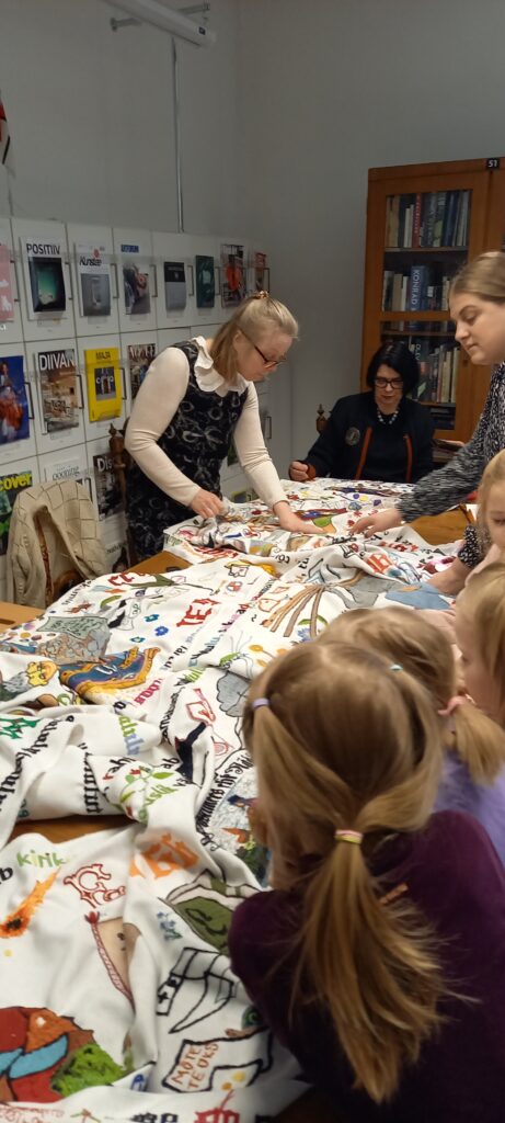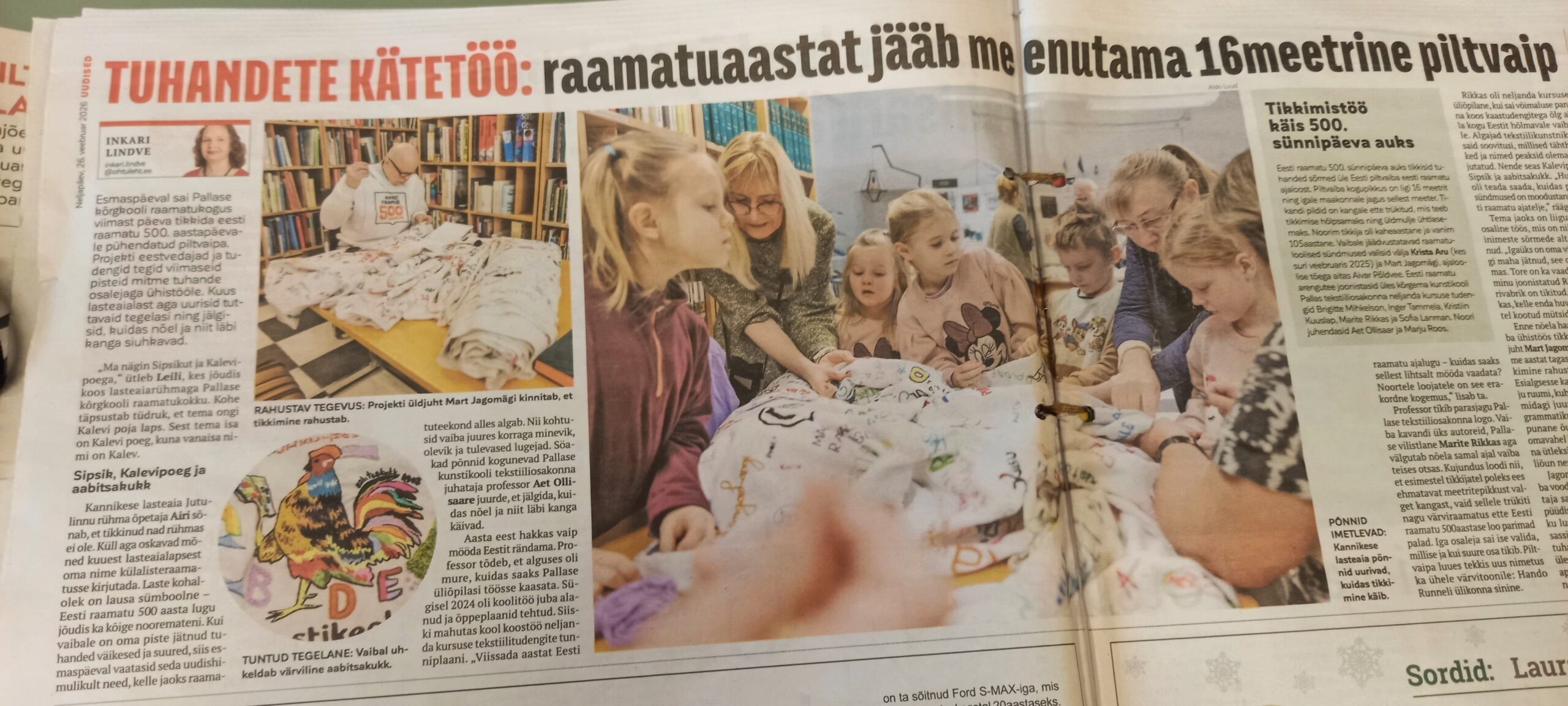 Rahvas tikkis eestikeelse raamatu 500  aastapäeva puhul uhke piltvaiba, mis rändas üle aasta mööda Eestit, et võimalikult paljud saaksid osaleda. Jutulinnud käisid Pallase kõrgkooli raamatukogus seda tähtsat vaipa uurimas ja oma käega katsumas ning leidsid sealt mitu aabitsakukke ja palju kõigile tuttavaid raamatutegelasi. Lapsed tikkisid ka oma nimetähe või tärni vaiba voodrile teiste osalejate nimede kõrvale ja selle jäädvustas “Õhtulehe” ajakirjanik, kes oma artiklit eestikeelse raamatu ajaloost ning suurest raamatuvaiba projektist ilmestas vahva  pildiga tikkivatest Jutulindudest.