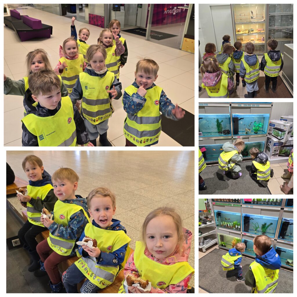 Mõtlesime hommikul lastega, et teeks miskit põnevat ja hoopis teistsugust kui tavaliselt. Lastele tundus põnev sõita kuhugi bussiga, ükskõik kuhu. Kuna ilm oli vihmane, suundusime seekord Lõunakeskusesse. Harjutasime liiklemist väljaspool lasteaeda…tänaval, bussiga, kaubanduskeskuses, lisaks ka elementaarseid käitumisreegleid. Käisime Betta kaupluses (müüjate lahkel loal) kalu, linde ja loomi vaatamas. Lastega leppisime enne kokku, et oleme vaiksed, loomi ei sega ja klaase ei katsu. Kõik lapsed pidasid kokkulepetest kinni. Pärast tegime keskusele tiiru peale ning jalutuskäik lõppes piknikuga jääväljaku juures. Kõik lapsed oli õppekäigust vaimustuses ja hakkasid kohe uurima, et millal uuesti minek. Otsustasime, et järgmine matk tuleb meil Botaanikaaeda. Kevad on mõnus!